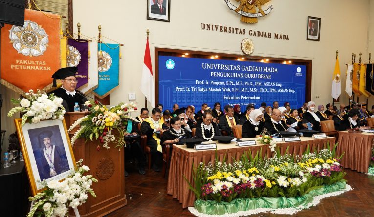 Pada kesempatan itu, Panjono menyampaikan pidato pengukuhan berjudul “Pengembangan Industri Ternak Potong Menuju Indonesia Emas 2045 “.